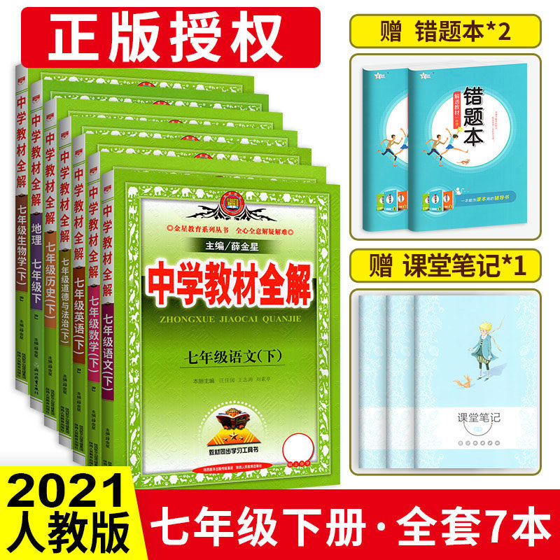 21中学教材全解七年级下册全套7本语文数学英语政治历史生物地理人教部编版初一7下课本详解解析完全解读初中教辅资料辅导书 虎窝淘